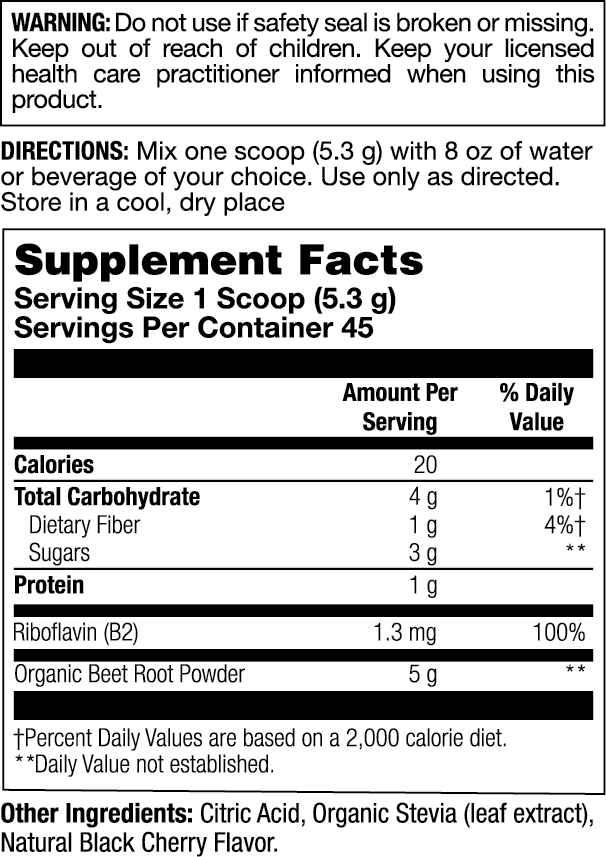 Support your cardiovascular health with Action Labs premium beet root powder.  Packed with natural beet root, Riboflavin (vitamin B2), this powerful blend supports cardiovascular health along with countless other health related benefits.  Perfect for active lifestyles and anyone looking to enhance their overall wellness.